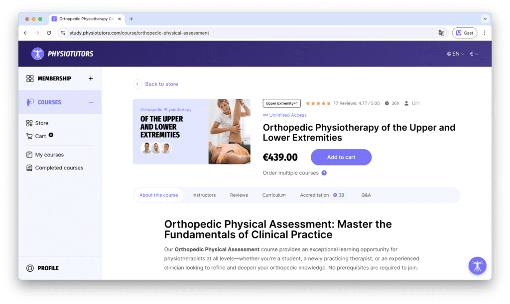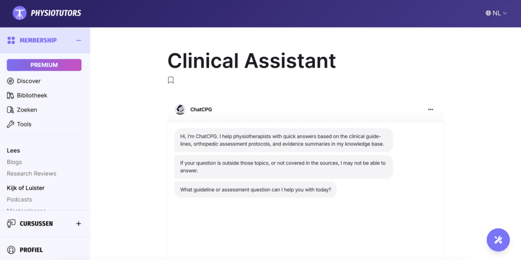 Physiotutors is een internationaal educatieplatform dat fysiotherapeuten helpt hun kennis te verdiepen met praktische, evidence-based content. Met een grote community van professionals wereldwijd biedt het platform online cursussen, interactieve tools en educatieve media die direct toepasbaar zijn in de praktijk.