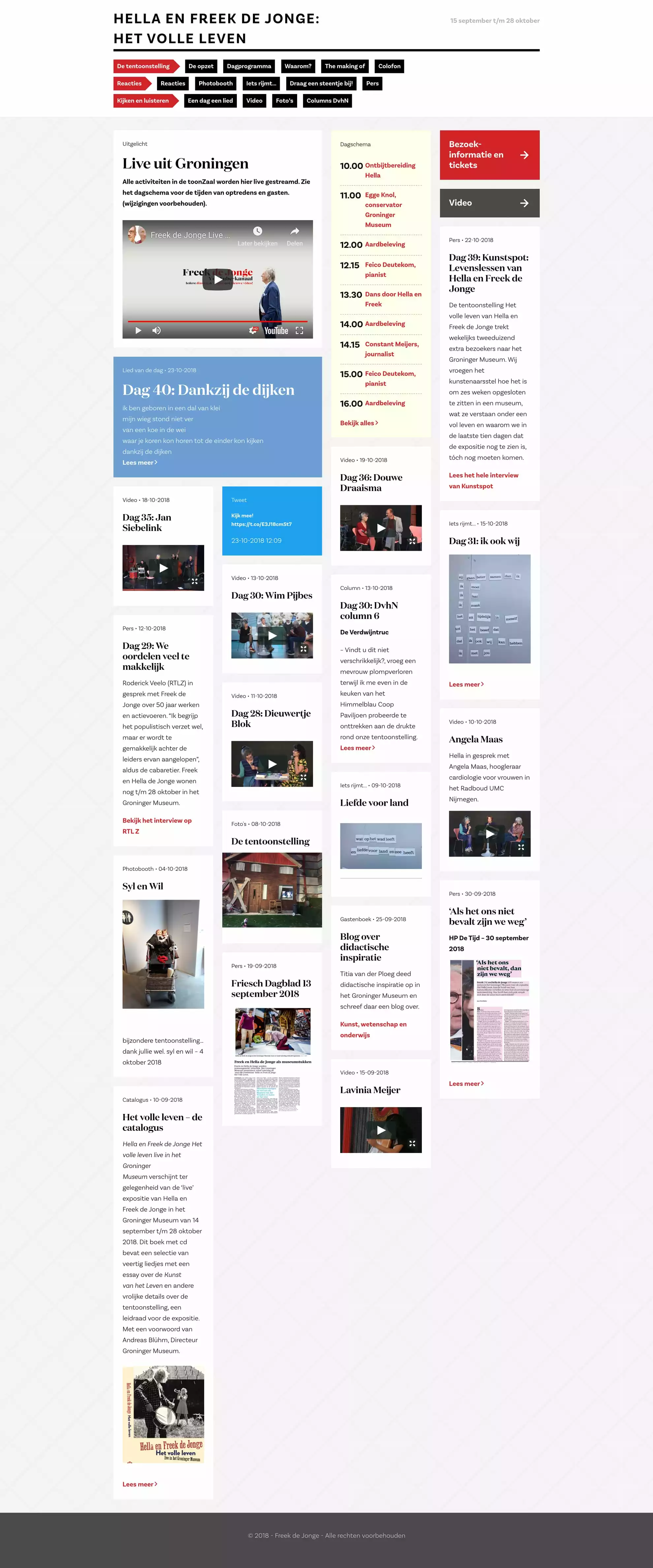 Er waren elke dag optredens, performances en interviews van het echtpaar met bekende personen uit de kunst, media en wetenschap. Er was ook ruime aandacht voor de aardbevingen in Groningen. In totaal kwamen er ruim 41.000 bezoekers. Voor dit bijzondere project realiseerde Van Ons de website.